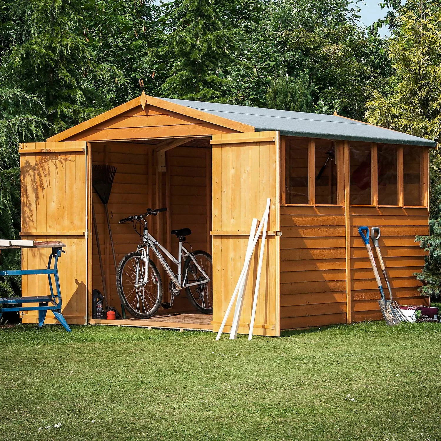 The 12′ x 6′ double door, overlap apex shed is an attractive feature in any garden.